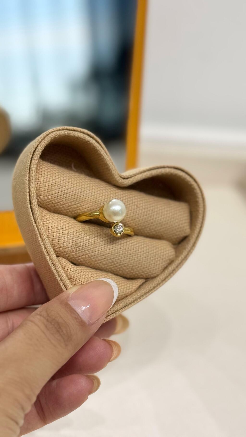 Anel Perola com ponto de luz Verniz Italiano