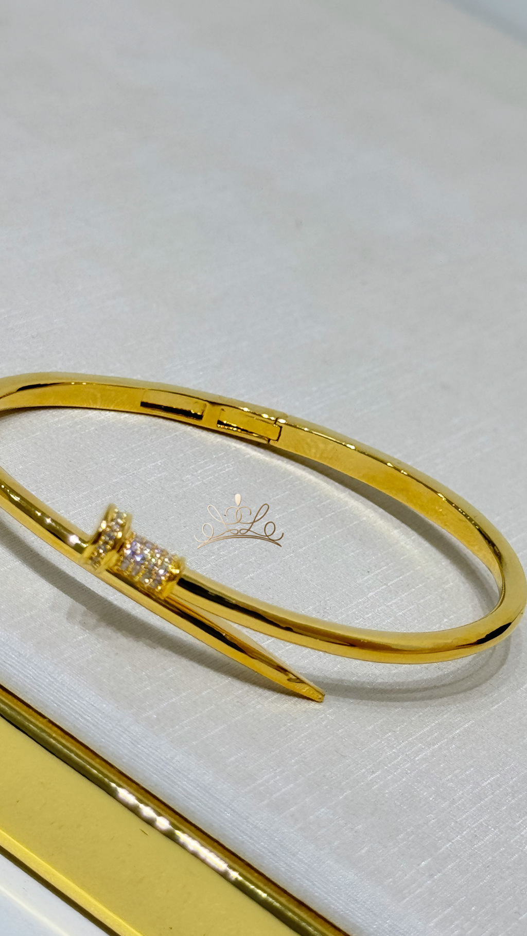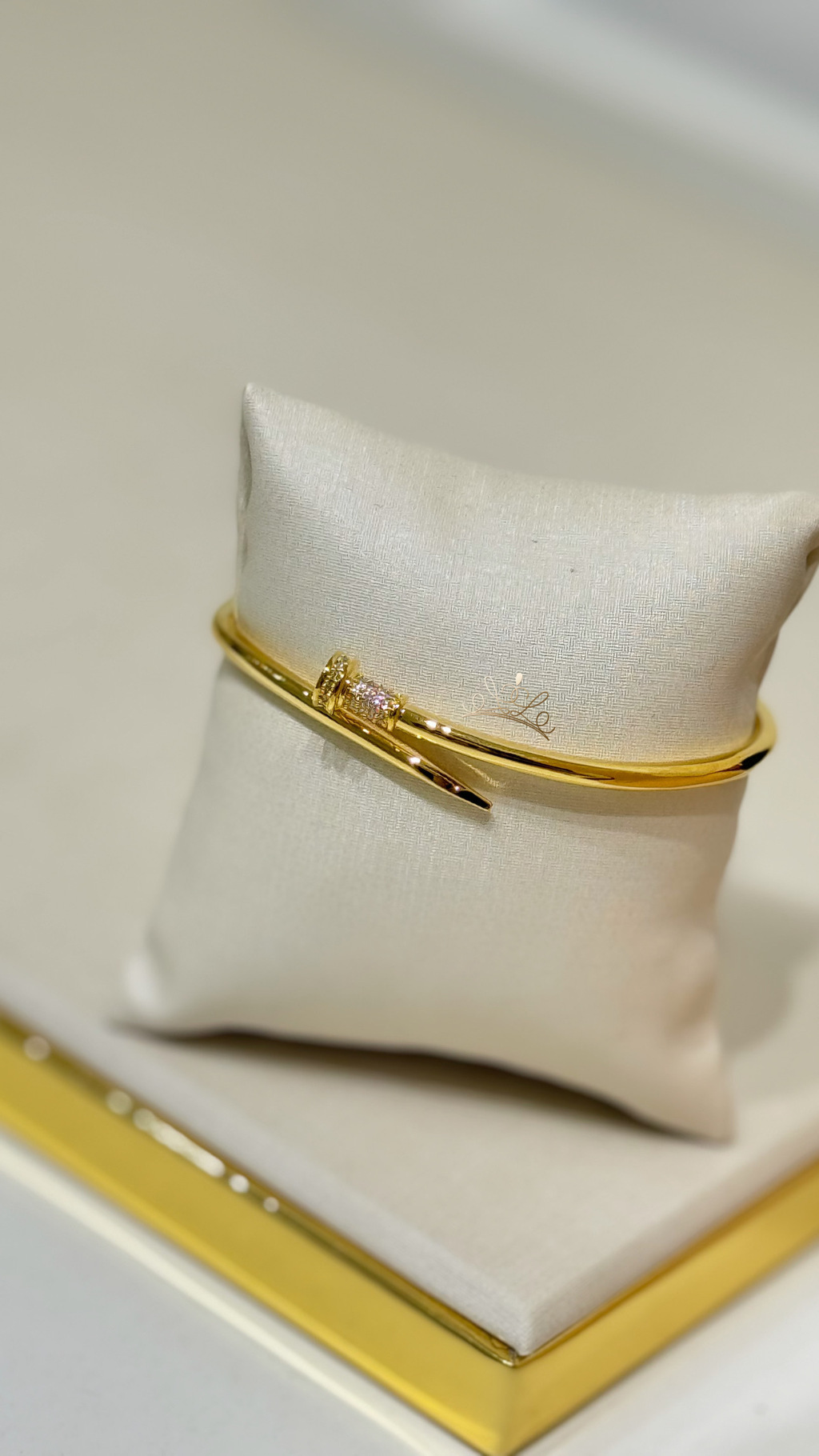 Bracele de luxo cravejado formato de prego com ponta arredondada 6cm e articulado.