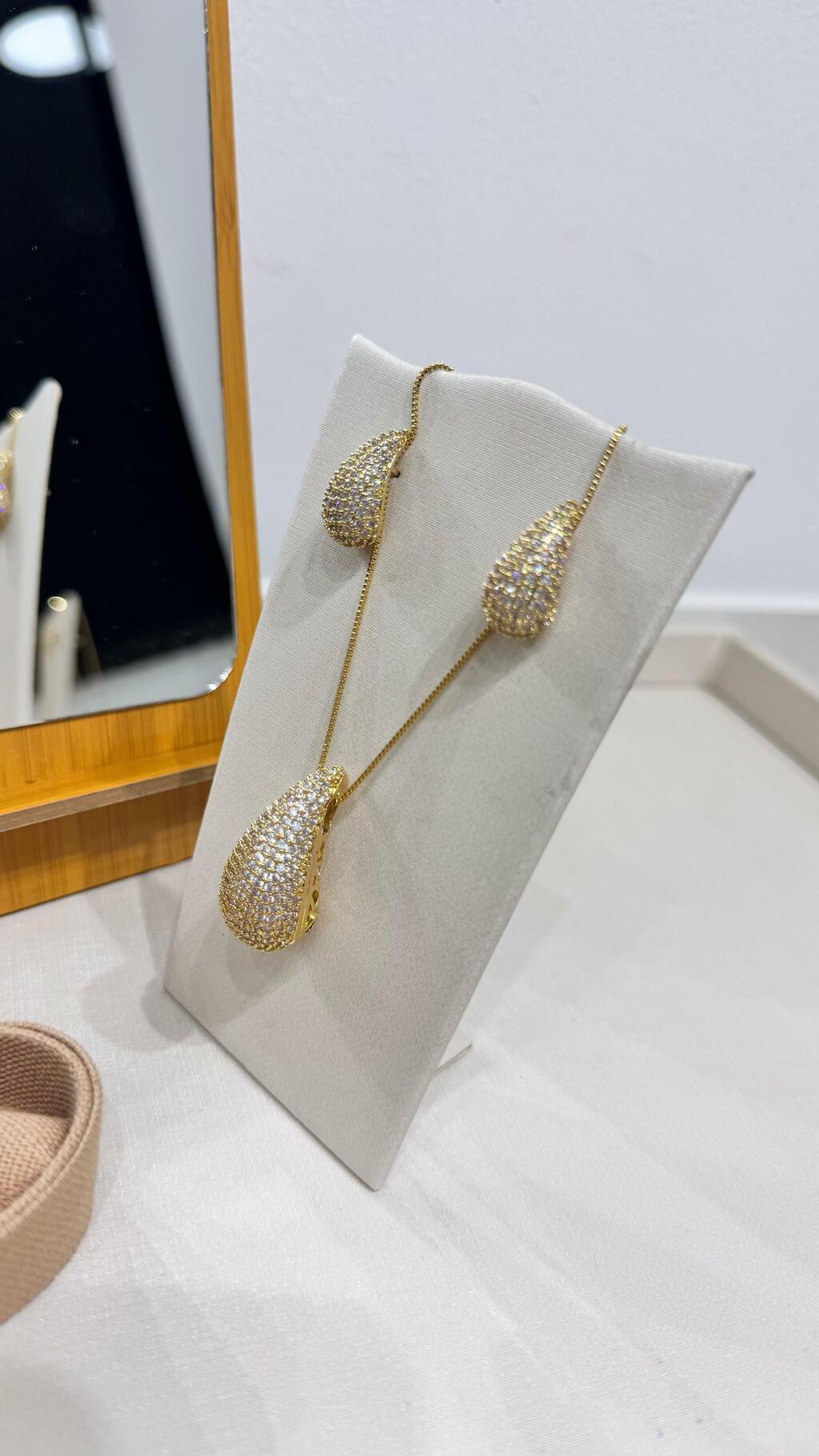 Colar com gota cravejada 45cm e brincos