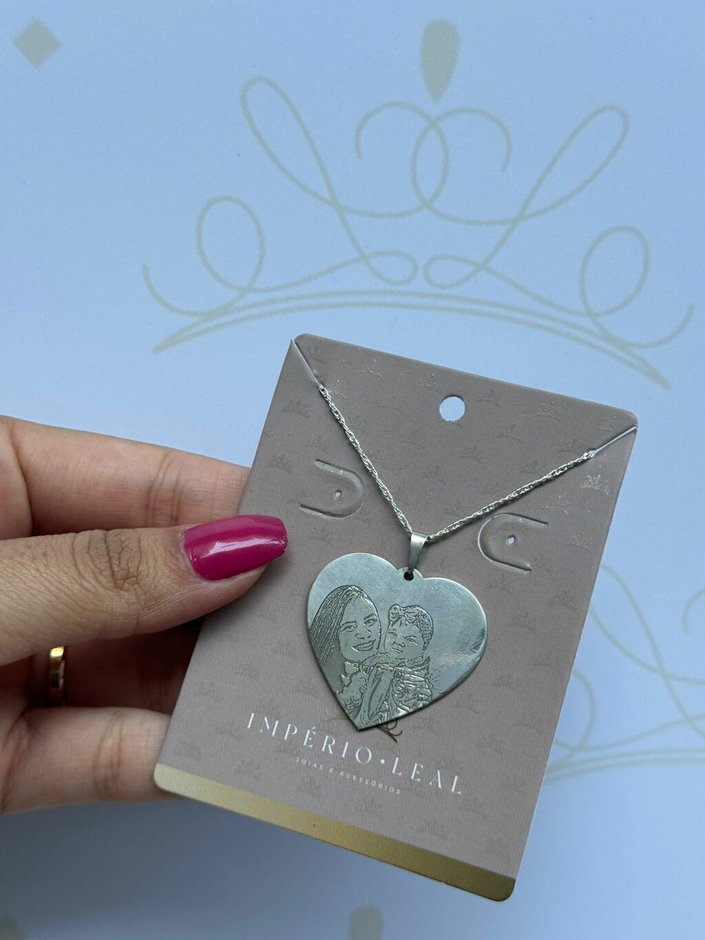 Medalha Coração Personalizada 3cm c/ Corrente Singapura  Prata 925