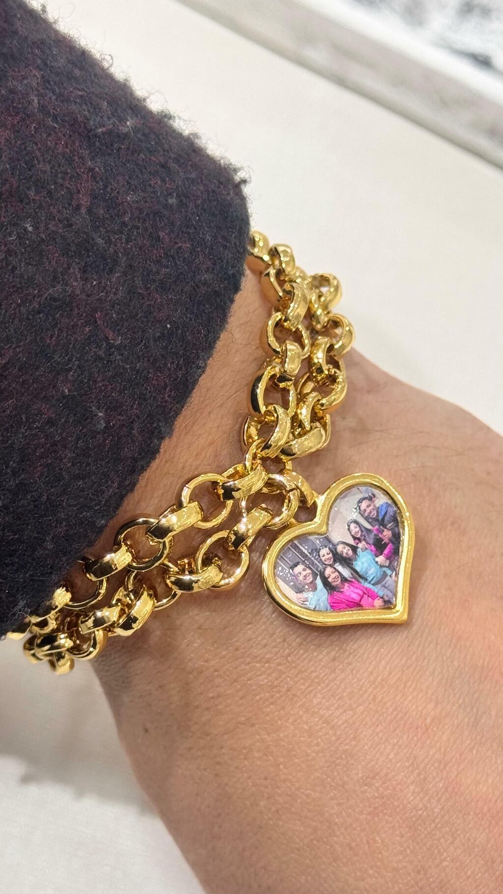 Pulseira Elo Duplo com Pingente de Foto Laminada