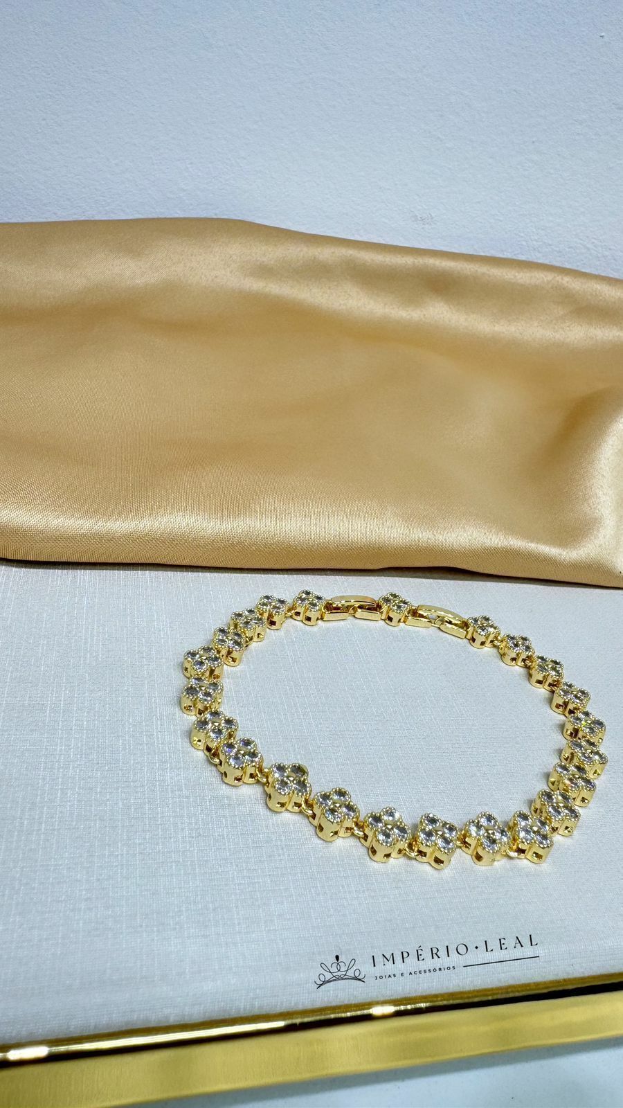 Pulseira Trevo Luxo Cravejada Semi Joia