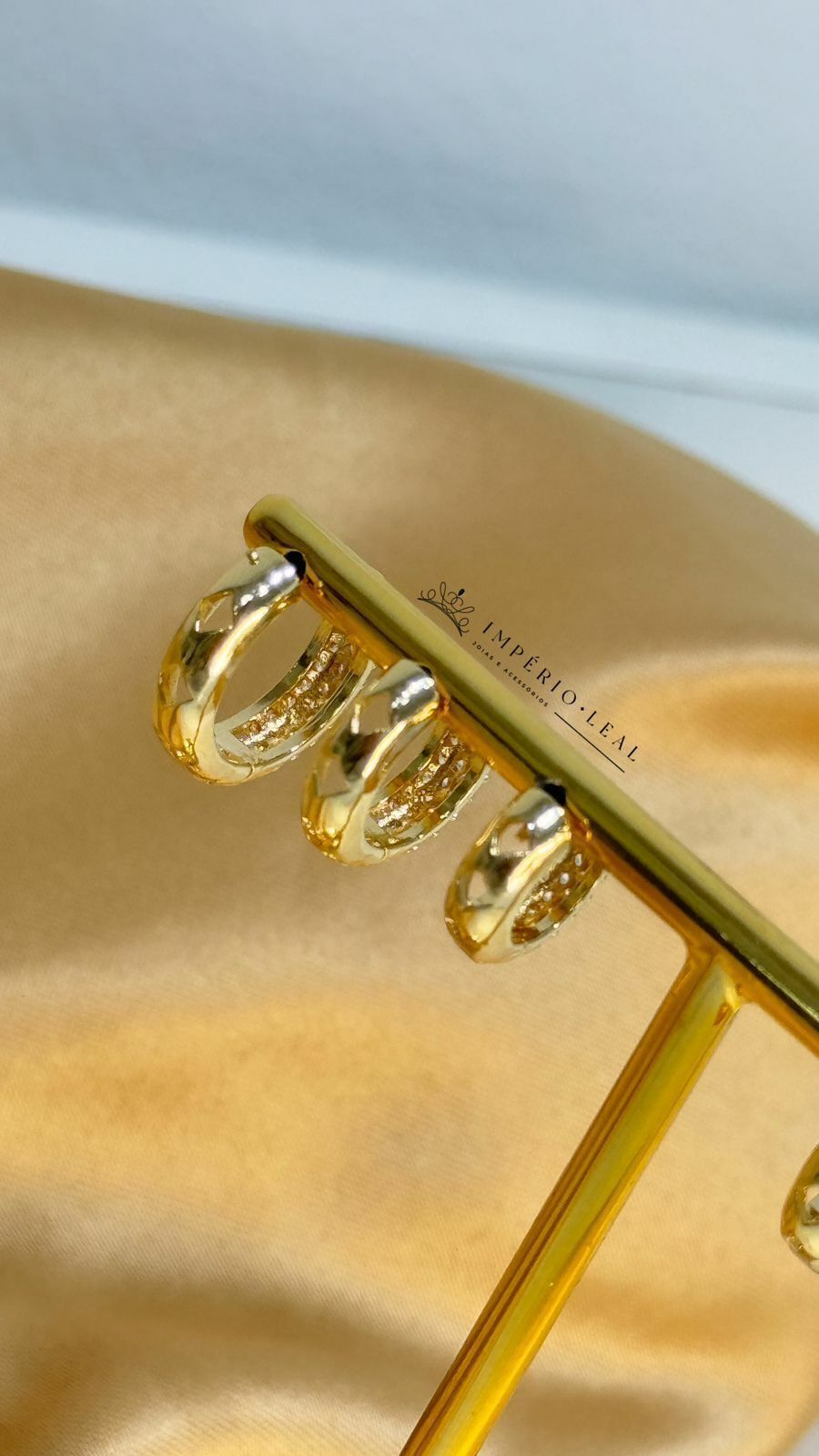 Trio de Brinco , argola click , redonda , 3 Fileiras cravejada