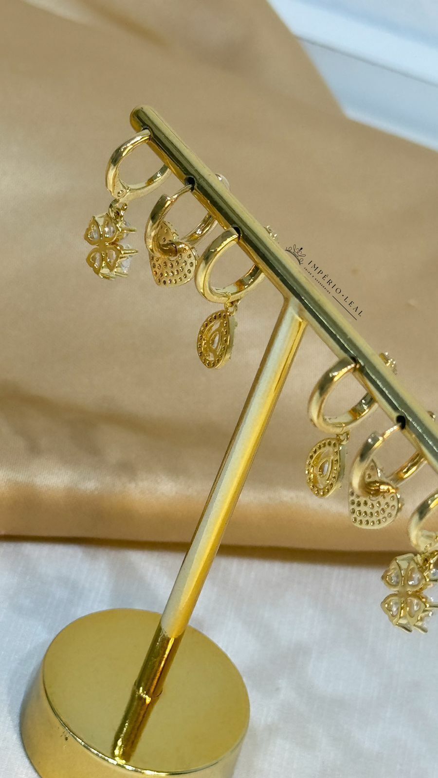 Trio de Brincos Variados Argola Click , Flor , Gota e Coração